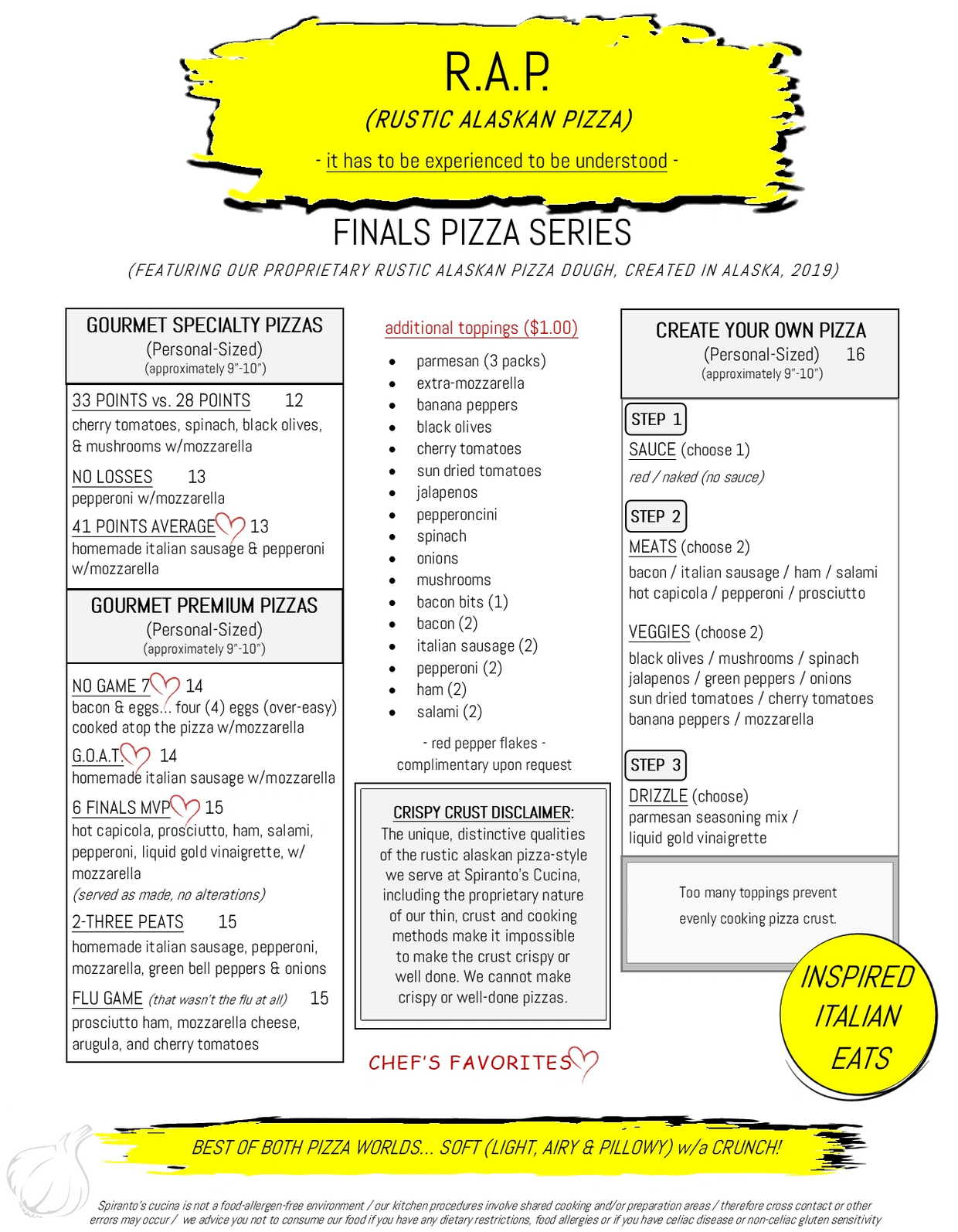 Step into spirantoscucina.com and experience a gastronomic delight like no other. Our online menu features a carefully curated selection of culinary dishes that showcase our flavors, with a particular focus on extraordinary inspired Italian eats from their mouthwatering levels-of-flavor to every dish's explosion of flavor. Join us for an unforgettable dining experience.